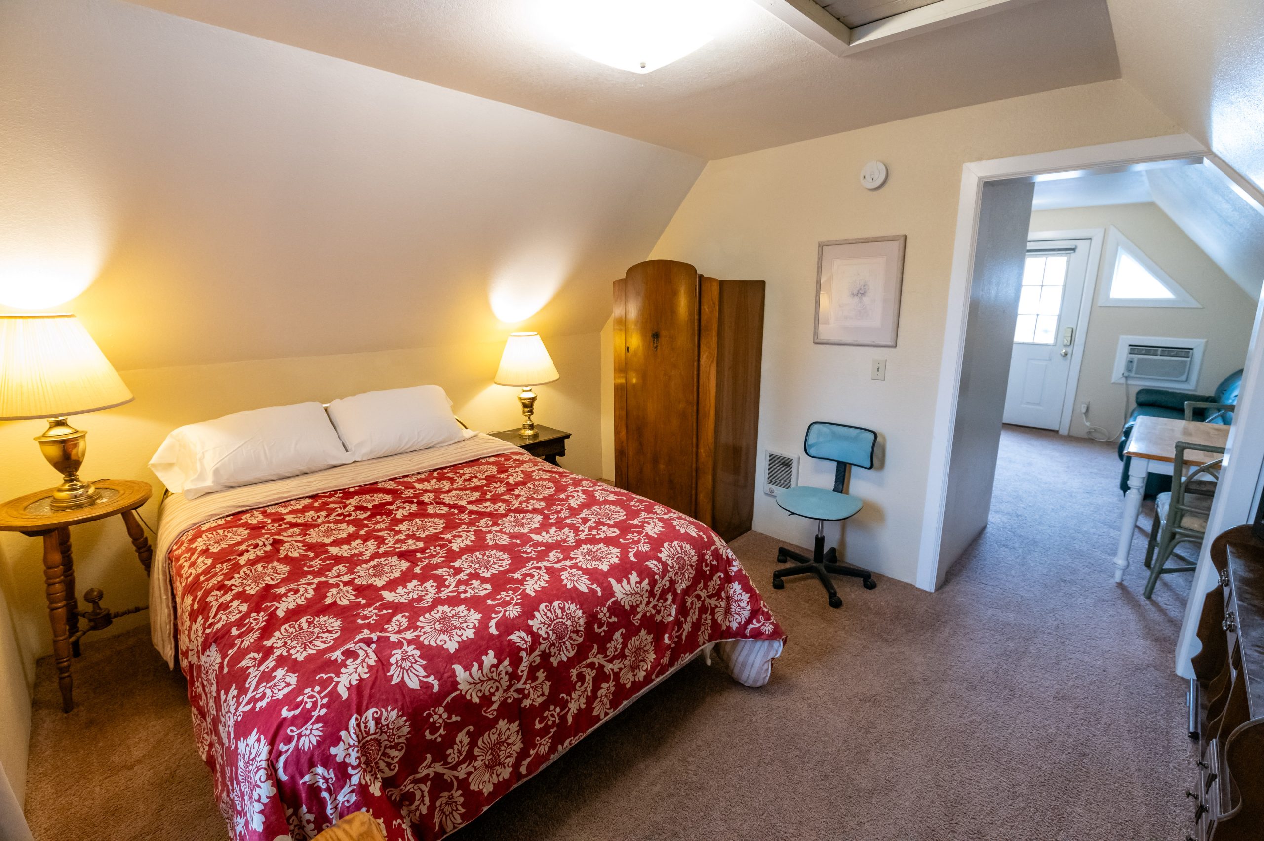 The Loft on the Lane is a one bedroom flat/studio located on the second floor with a view of Grizzly Peak from the front porch. Comfortable for 2 guests and at 7 blocks from the Ashland Plaza, it’s easy access to the park, food, and entertainment by foot or bicycle. The Loft on the Lane can be rented separately or at a discount with the Court on the Lane listing for those who need additional room or privacy.
